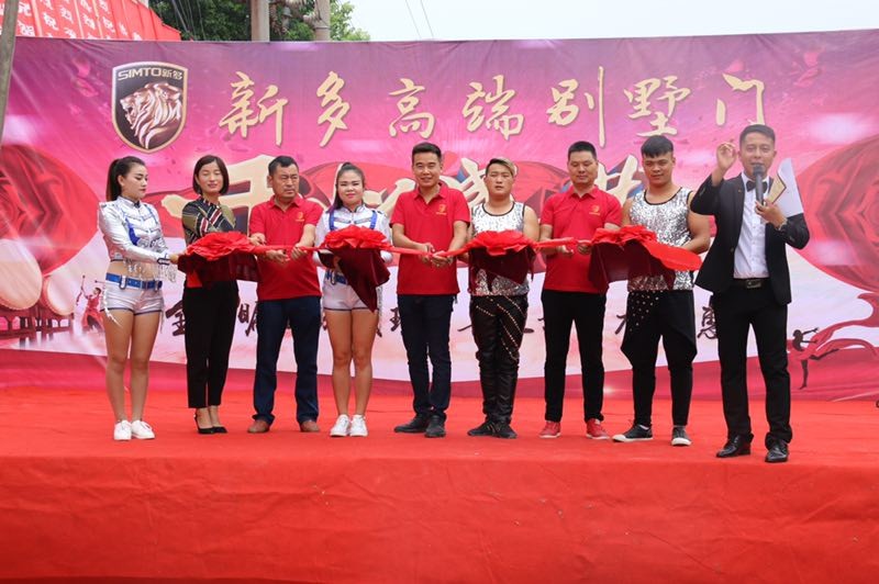 一幕精彩金鼓齊鳴開(kāi)場(chǎng)后,嘉賓們上臺(tái)致辭祝賀。新多集團(tuán)非標(biāo)門(mén)事業(yè)部銷(xiāo)售總監(jiān)胡總對(duì)本次新多高端別墅門(mén)新蔡旗艦店盛大開(kāi)業(yè)表達(dá)了由衷祝福,祝斌琪門(mén)業(yè)開(kāi)門(mén)大吉、生意興隆。其后,眾嘉賓一到上臺(tái)為醒獅點(diǎn)睛并剪彩共慶開(kāi)業(yè)。
