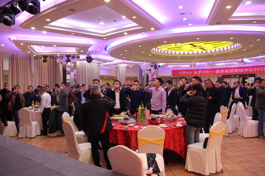 當(dāng)晚,新多集團(tuán)營(yíng)銷中心2018年度慶功晚宴在永康市明珠大酒店三樓隆重舉行。慶功晚宴現(xiàn)場(chǎng),幸運(yùn)大抽獎(jiǎng)、即興大演唱……歡聲笑語(yǔ)此起彼伏,晚宴現(xiàn)場(chǎng)成了感恩的舞臺(tái)和歡樂(lè)的海洋,全體新多人的心被緊緊地凝聚在一起。在酒杯與酒杯間,共敘這一年的辛苦與快樂(lè),一起攜手共進(jìn),希冀再創(chuàng)2019年新的輝煌。