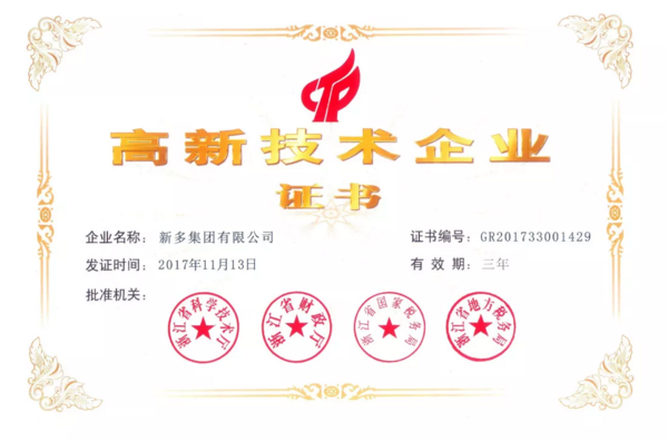 近年來(lái)新多集團(tuán)榮獲了諸多高含金量的榮譽(yù),