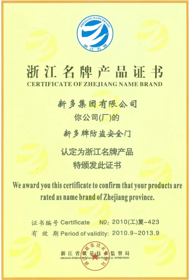 浙江省名牌產(chǎn)品是歷經(jīng)各地市審核把關(guān)、企業(yè)現(xiàn)場(chǎng)審查、專(zhuān)家綜合評(píng)價(jià)等程序,最終由省質(zhì)監(jiān)局、省委宣傳部、省委政策研究室等20多個(gè)部門(mén),以及社會(huì)團(tuán)體和專(zhuān)家聯(lián)合組成的省名牌產(chǎn)品推進(jìn)委員會(huì)全體會(huì)議審議確認(rèn),最終評(píng)選出來(lái)的結(jié)果。新多集團(tuán)歷經(jīng)重重審核,憑借良好的市場(chǎng)口碑、雄厚的生產(chǎn)實(shí)力、優(yōu)質(zhì)的產(chǎn)品質(zhì)量,榮獲“浙江省名牌產(chǎn)品”稱(chēng)號(hào)。